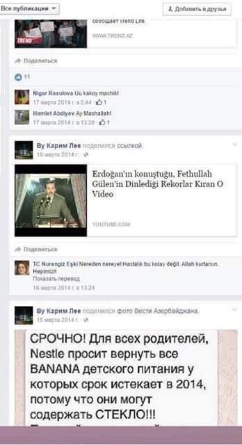 Vüsal Kerimli'nin 2014'te, "BakuBus" MMC'ye müdür yardımcısı tayin edildikten hemen sonra acele kapattığı "Facebook" profilinden birkaç paylaşımın fotokopisini okuyucularımıza sunuyoruz: