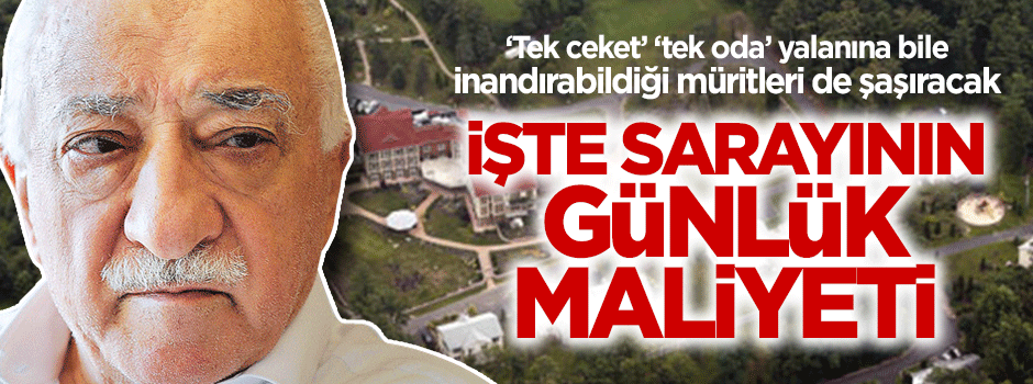 Hakkında terör örgütü lideri iddiası bulunan Fetullah Gülen, Pensilvanya'daki sarayının fotoğraflarının çekilmesini 'densizlik' olarak yorumladı. Daha önce yalnızca tek ceketinin olduğunu söyleyen Gülen, günlük mnaliyetinin 100 bin doları bulduğu ortaya çıkan sarayının yalnızca birkaç odadan ibaret olduğunu savundu.