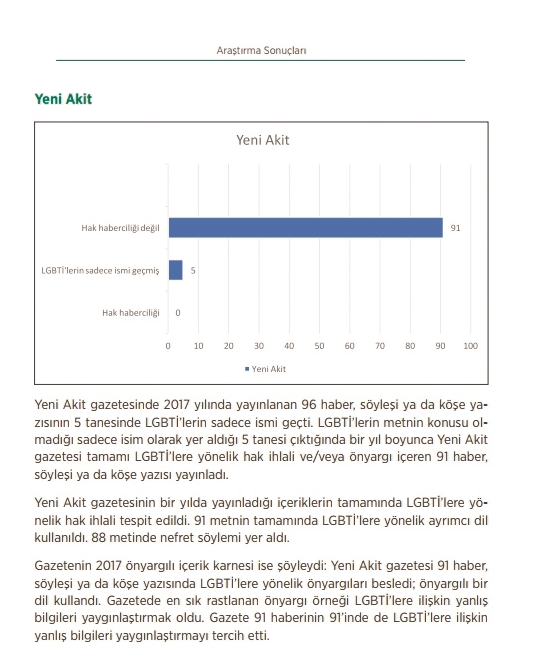 Sayfalarını terör bülteni haline getiren Evrensel ve Birgün gibi sözde gazetelere de övgüler düzen LGBTİ’lilerin bu tavrı, “bozacının şahidi şıracı” yorumlarına neden oldu. Sapkın homoların ahlaksızlıklarını gazetelerinden duyuran millet düşmanlarını, “Hak savunucu” olarak lanse eden LGBTİ’liler, kimlerin kazanında kaynadığını da adeta itiraf etmiş oldu. Mezhepçi, mürteci ve kızıl bir ideolojinin esiri sözde gazetecilerin kendilerini övmesine sarılan LGBTİ’lilerin zavallıca tutumu, “denize düşen yılana sarılır” kadim atasözümüzü hatırlattı. Rapor, LGBTİ’li sapkın homoların medyayı nasıl bir silah gibi kullandığının da itirafnamesi oldu. Ulusal basında ünlü LGBTİ’li simalarla yapılan röportajların tanıtımları açısından önemli bir gelişme olduğu da kaydedildi. Akit, bu rapor yayımlanmadan önce sapkın homoların dizileri, sinema filmlerini ve ulusal basını ahlaksızlıklarının yaygınlaştırılmasında önemli bir araç olarak gördüklerini deşifre etmişti.