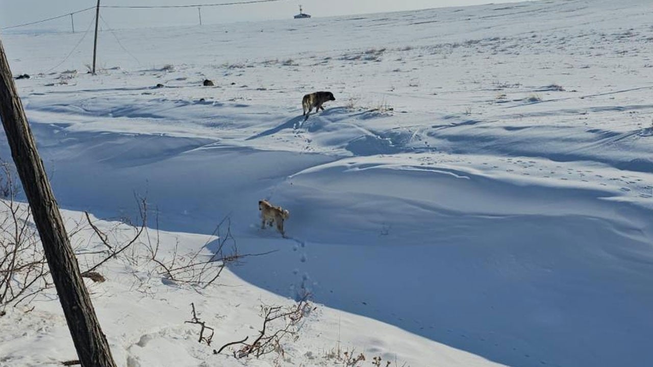 Şanlıurfa'nın Siverek ilçesinde kar yağışı nedeniyle yolunu şaşıran bir tilki ile dron arasında yaşa..
