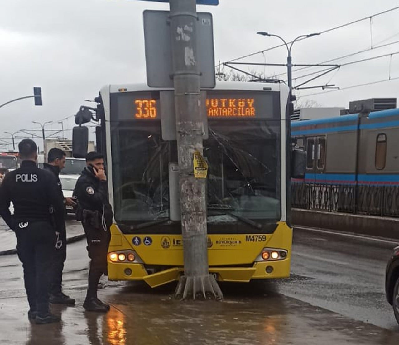 Sultangazi'de yola dökülen akaryakıt nedeniyle kayganlaşan yolda aralarında İETT otobüsünün de bulun..
