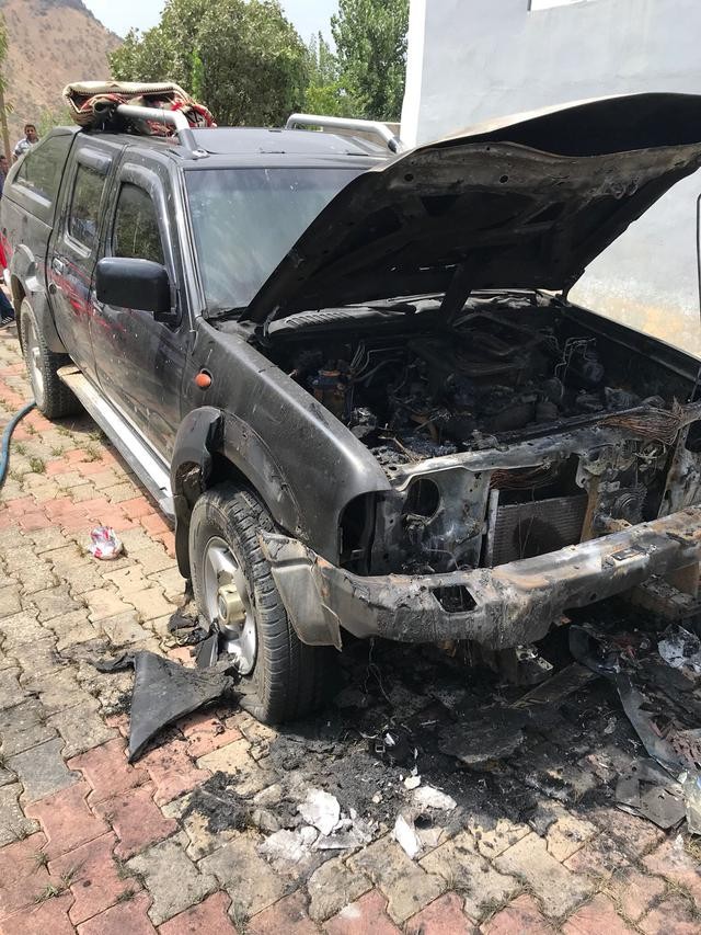 Şemdinli'nin Derecik beldesine bağlı Hacıbey Mahallesi'nde henüz kimliği belirsiz bir kişi, AK Parti Hakkari Milletvekili Dinç'in korumalarına tahsis edilen park halindeki 06 HRH 09 plakalı pikabı ateşe vermişlerdi.