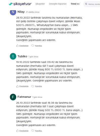 Vatandaşların markalar, kuruluşlar ve çeşitli sektörlerle ilgili şikayetlerini yazdıkları sikayetvar.com’da söz konusu telefon numarasıyla ilgili çok sayıda paylaşım olduğu görüldü.