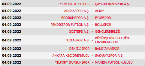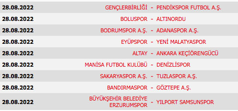 1. Lig'de yeni sezon, 12 Ağustos'ta başlayacak. İlk yarısı 25 Aralık'ta sona erecek lig, 14 Mayıs 2023'te tamamlanacak. Çekilen fikstüre göre 1. Lig'de 2022-2023 sezonunun ilk hafta müsabakaları şöyle sıralandı: