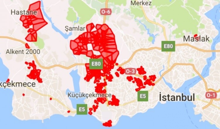 BEDAŞ'ın anlık veri haritasına göre Avrupa yakasındaki kesintiler: