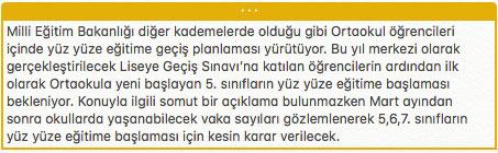 9., 10.,11. sınıflar ne zaman yüz yüze eğitime başlayacak?
