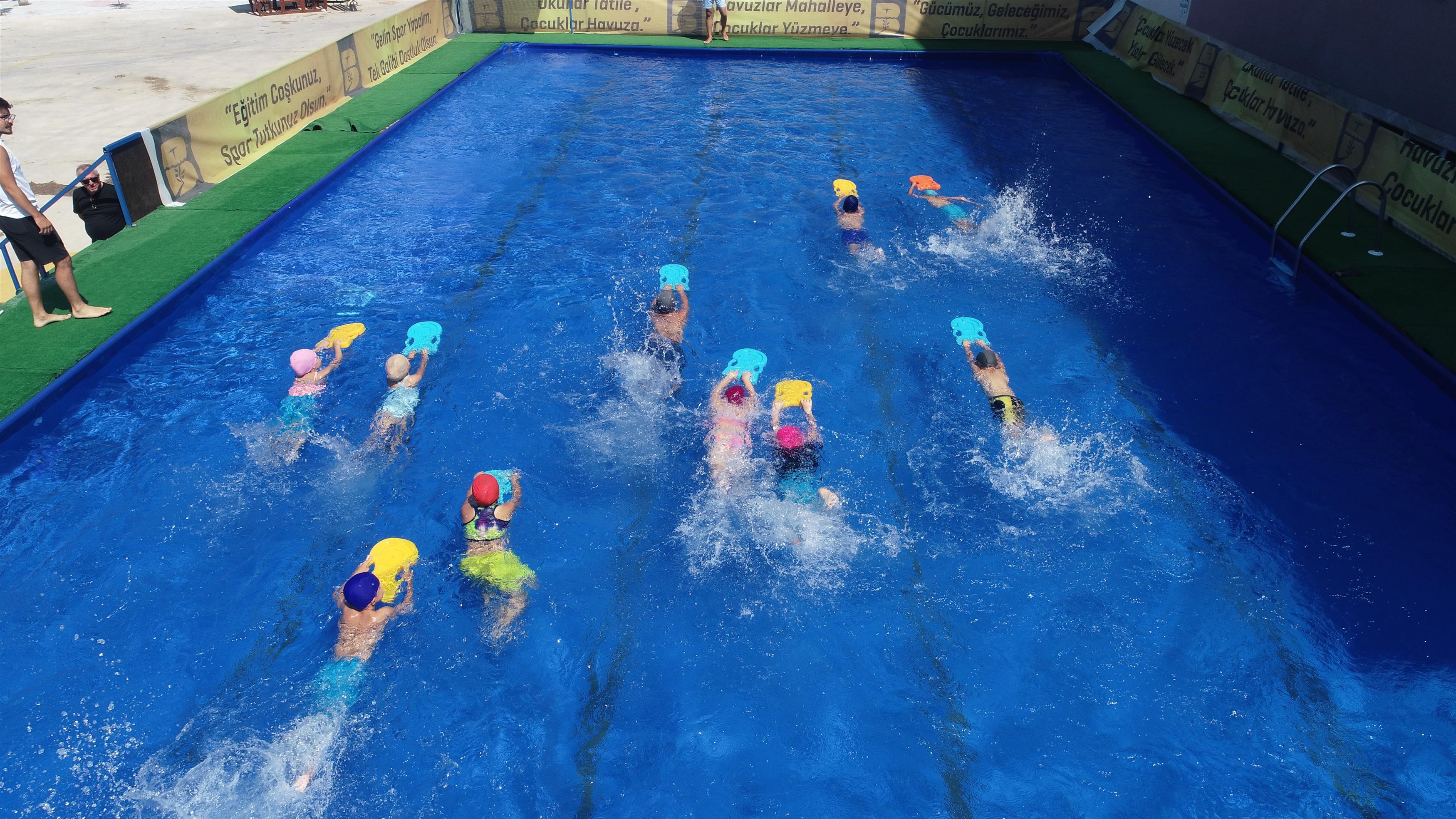 Çocukların yüzme eğitimi alırken; yaşam kuralları, spor kültürü, spor ahlakı, takım olma ve birlikte hareket etmeyi de öğrendiklerine dikkat çeken Yahya Akduman, “Başkanımız Yücel Yılmaz’ın talimatıyla 2015 yılından bugüne kadar pandemi dönemi haricinde, her yıl okulların bahçelerine kurduğumuz portatif yüzme havuzlarında 100 binden fazla çocuğumuza yüzmeyi öğrettik. Gençlik ve Spor Bakanlığı başlatmış olduğumuz bu projeyi tüm Türkiye’de uygulamaya alarak “Yüzme Bilmeyen Çocuk Kalmasın” projesini başlattı” dedi.
