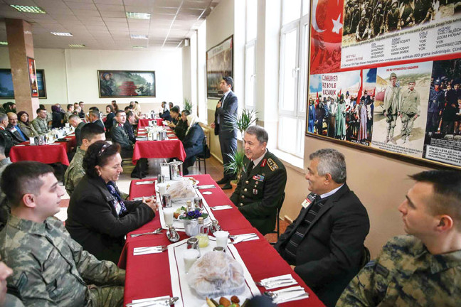Genelkurmay Başkanlığı Karargahı’nda 18 Mart Şehitler Günü dolayısıyla özel tören düzenlendi. Genelkurmay Başkanı Hulusi Akar’ın ev sahipliğindeki törene şehit aileleri katıldı. Duygusal anların yaşandığı salonda, Merasim Sokak’ta askeri servis araçlarının geçişi sırasında düzenlenen terör saldırısında şehit olanlardan bazılarının yakınları da hazır bulundu. Gözyaşlarına boğulan şehit yakınlarını Orgeneral Akar teselli etti.