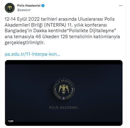 12-14 Eylül 2022 tarihleri arasında Uluslararası Polis Akademileri Birliği (INTERPA) 11. yıllık konferansı Bangladeş’in Dakka kentinde “Polislikte Dijitalleşme” ana temasıyla 46 ülkeden 126 temsilcinin katılımlarıyla düzenlendi.