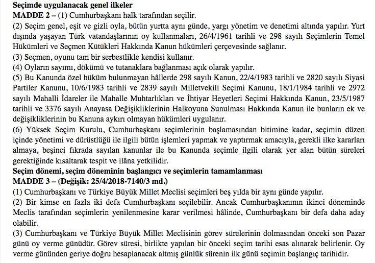 Cumhurbaşkanı sistemi erken seçim kararı nasıl alınır? Seçim dönemi, seçim döneminin başlangıcı ve seçimlerin tamamlanması MADDE 3 – (Değişik: 25/4/2018-7140/3 md.)Cumhurbaşkanı ve Türkiye Büyük Millet Meclisi seçimleri beş yılda bir aynı günde yapılır. (2) Bir kimse en fazla iki defa Cumhurbaşkanı seçilebilir. Ancak Cumhurbaşkanının ikinci döneminde Meclis tarafından seçimlerin yenilenmesine karar verilmesi hâlinde, Cumhurbaşkanı bir defa daha aday olabilir.