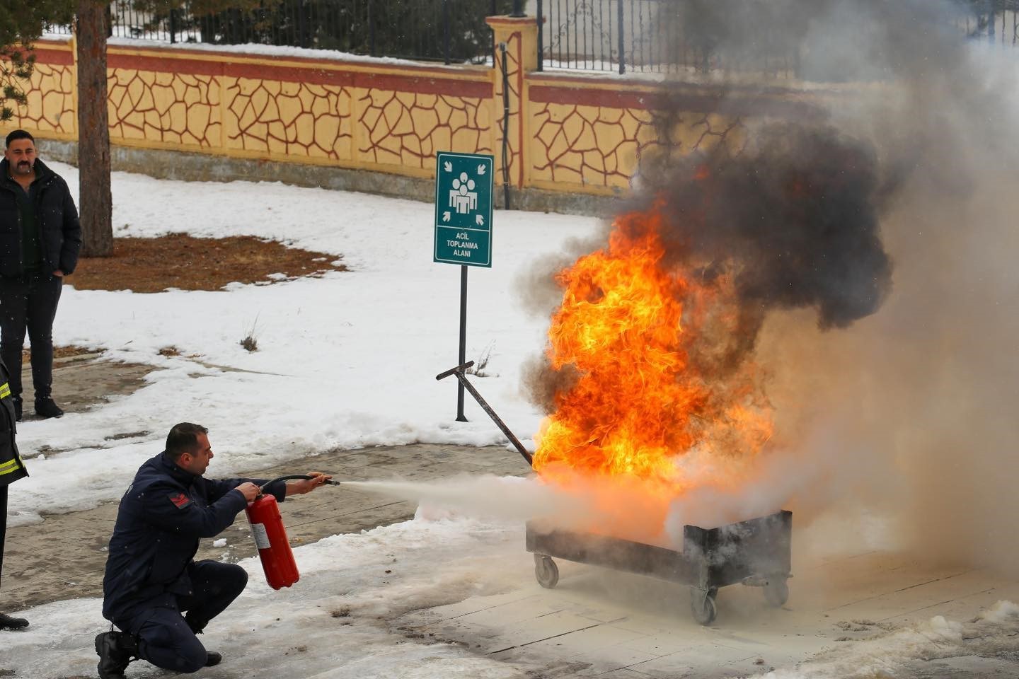 İtfaiye eğitim amirliği tarafından hazırlanan, yanma ve yangın bilgisi, yangın söndürme maddeleri ve yöntemleri, yangından korunma tedbirleri ile ilgili olarak teorik yangın eğitimi sunumuyla, yangın güvenliği, risk değerlendirmesi ve müdahale stratejileri hakkında detaylı bilgiler verildi.
