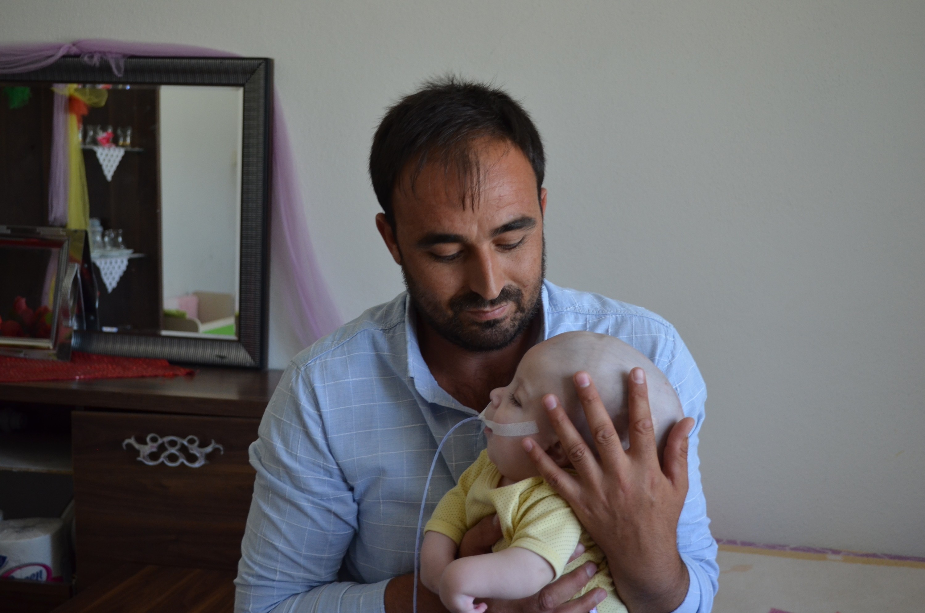 Bitlis'te 12 aylık bir bebeğin beyninin bir kısmı "Ensefalosel" isimli bozukluk nedeniyle kafatasının dışında büyüyor.