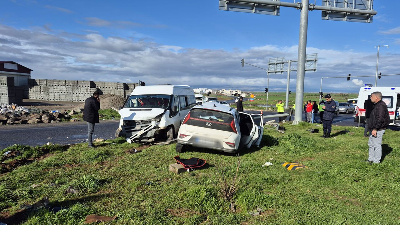 Diyarbakır’da öğrenci servis minibüsü ile otomobilin çarpıştığı kazada çoğu öğrenci 13 kişi yaralandı.