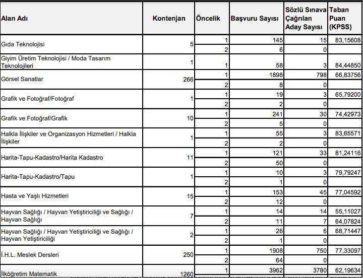 Branş ve kontenjan dağılımı belli olmayan 15 bin öğretmen ataması taban puanları da henüz belli olmadı. 2021 Mart Sözleşmeli Öğretmenlik İçin Sözlü Sınava Çağrılanlara Ait Taban Puanlar şu şekilde olmuştu: