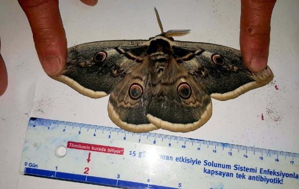 Sivas'ın'ın Suşehri ilçesinde kanat açıklığı ile boyu yaklaşık 15 santimetre uzunluğunda olan 'Tavus' kelebeği yakalandı.