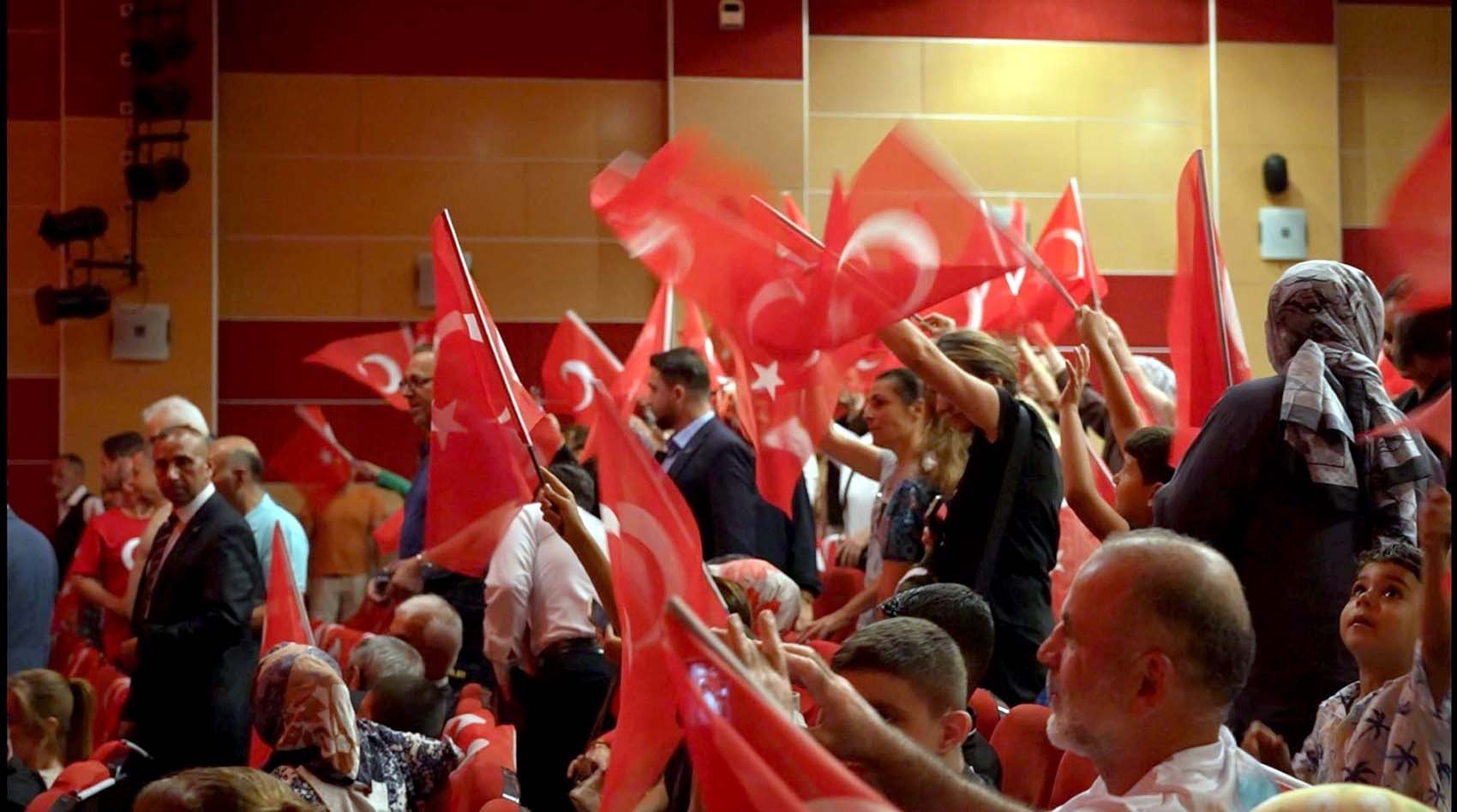 Ellerinde Türk bayraklarıyla salonu dolduran vatandaşlar, duygu dolu anlar yaşadı. Gecede konuşan Belediye Başkanı Dr. Hakan Bahadır, 15 Temmuz’un milletin iman gücüyle yazdığı bir zafer destanı olduğunu vurgulayarak şu ifadeleri kullandı, “İman dolu yürekler şehadete yürüdü. Hainlerin gözlerini o an korku bürüdü. Bu halk bir kahramandır, bu sözü unuttular. Canları pahasına vatanı korudular. 15 Temmuz Destanı, Demokrasi Zaferi olarak tüm dünyaya gösterdi ki; Türk milleti gerektiğinde şehadet şerbetini düşünmeden içer. Hepiniz hoş geldiniz, şeref verdiniz. Bugün hem hüzünlüyüz hem gururluyuz. 253 şehidimiz, yaklaşık 3 bin gazimiz var. Ama aynı zamanda sevinçliyiz; çünkü o hain kalkışma başarıya ulaşamadı.”