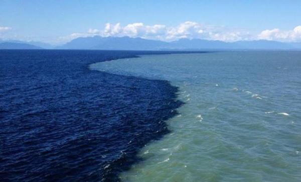 (٥٣) وَهُوَ الَّذٖي مَرَجَ الْبَحْرَيْنِ هٰذَا عَذْبٌ فُرَاتٌ وَهٰذَا مِلْحٌ اُجَاجٌۚ وَجَعَلَ بَيْنَهُمَا بَرْزَخاً وَحِجْراً مَحْجُوراً