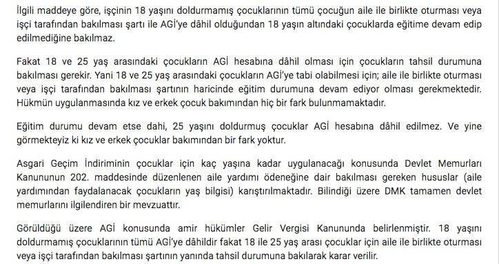 Asgari geçim indiriminde 18 yaşını doldurmamış çocuklar ile 18-25 arası eğitimi süren çocuklar dikkate alınır. 25’ten büyük çocuk, eğitimi sürse bile dâhil edilmez.