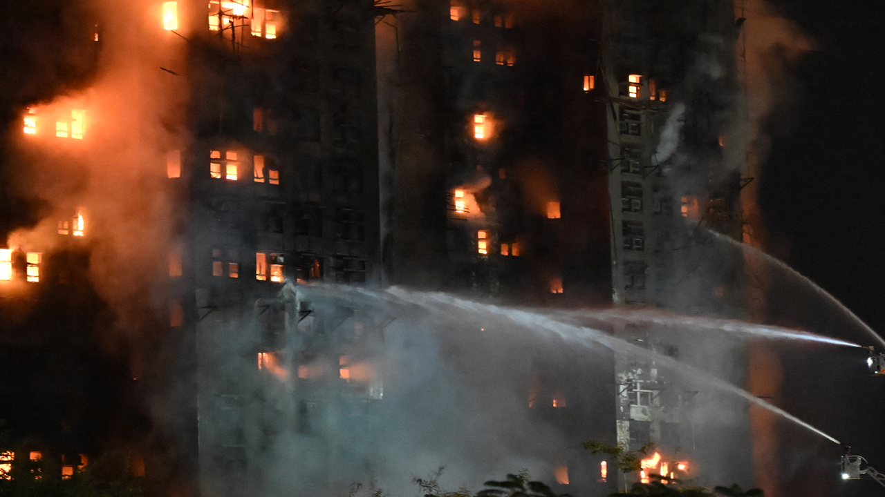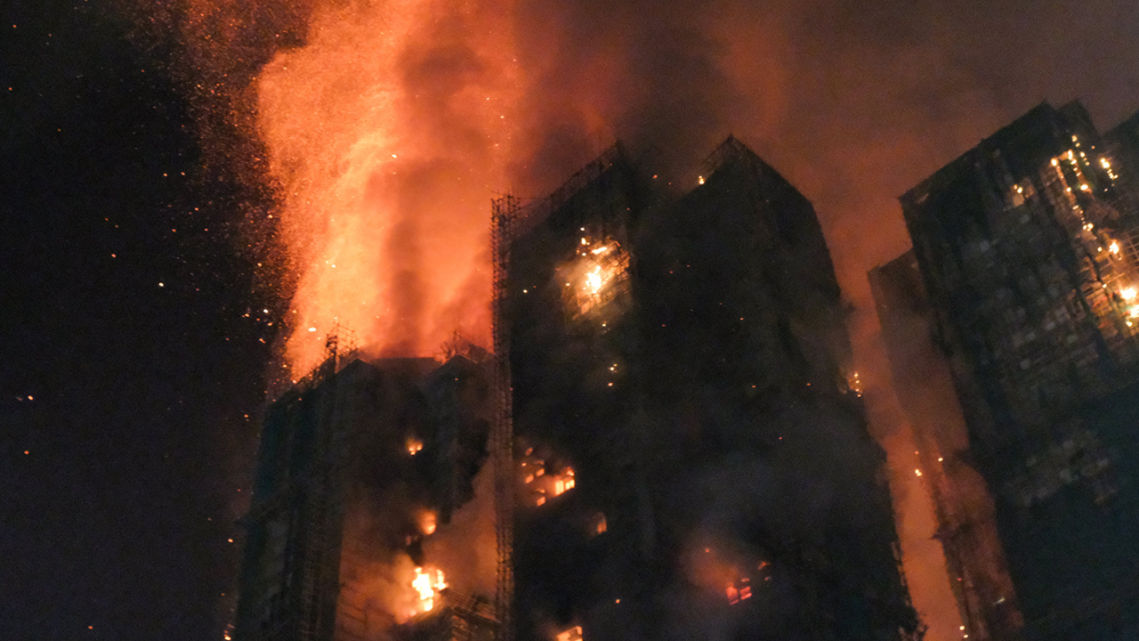 Yangın, 1900'den fazla dairenin bulunduğu sitede, binaların yenilenmesi için dış cepheye kurulu bambu iskeleler yüzünden hızla yayıldı.