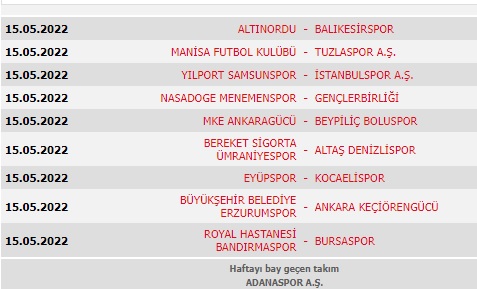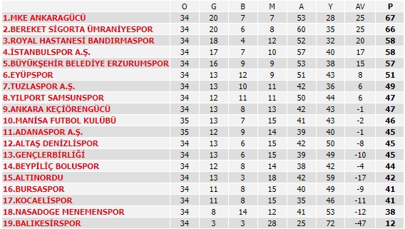 1.Lig puan durumu | 1.Lig 37.hafta maçları