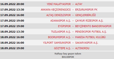 1.Lig puan durumu | 1.Lig 6.hafta programı
