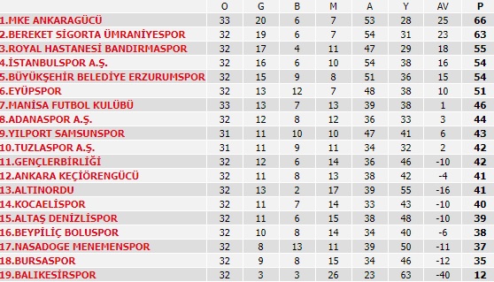 1.Lig’de 34.hafta heyecanı 25 Nisan Pazartesi akşamı oynanacak maçlarla tamamlanacak. Pazar günü maçlarının tamamlanmasıyla birlikte pek çok kişi oluşan puan durumu ve alınan sonuçları incelemeye başladı. Peki, 1.Lig'de lider kim?