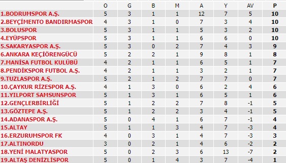 1.Lig’de 5.hafta maçlarına 11 Eylül Pazar günü devam edildi. Peki, 1.Lig’de kim lider? 1.Lig puan durumu: