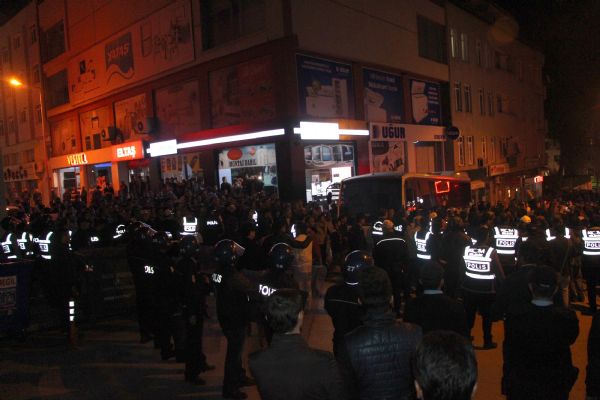 Burada 3 ayrı gruba ayrılan kalabalık, HDP İl binasına doğru koşmaya başladı. Bina önünde güvenlik önlemi alan polis, gruptakilerin parti binasına girmelerini engelledi.