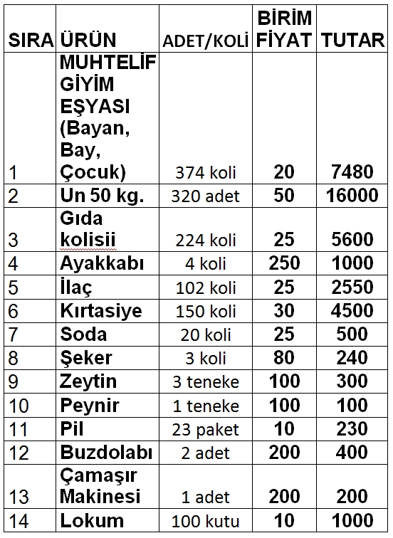 İnsani Yardım Malzemelerinin Detaylı Bilgisi ;