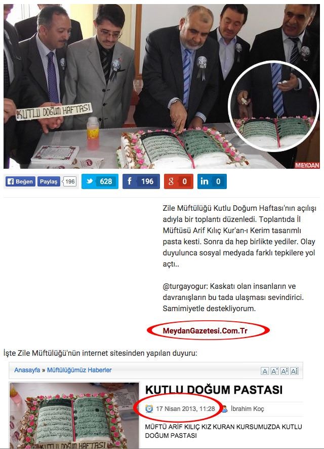 Zile'de 2 yıl önce kız Kur'an kursu açılışında yapılan Kur'an şeklindeki pasta Paralel Yapı'nın yeni gazetesi Meydan tarafından yeni bir habermiş gibi sunuldu.