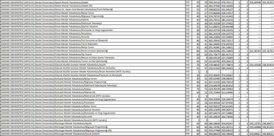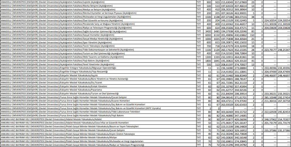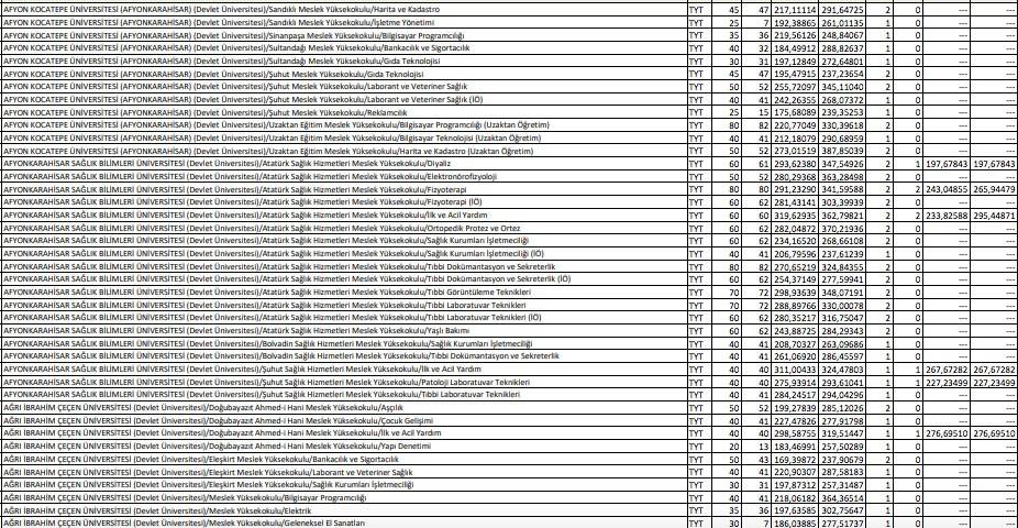2 yıllık üniversite bölüm taban puanları için tıklayın