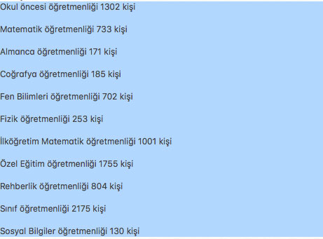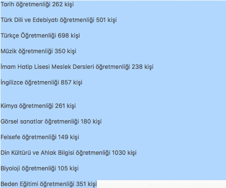 20 bin öğretmen ataması branş dağılımı kontenjan listesi 2022: