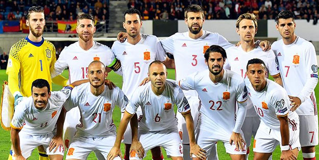 Defans: Dani Carvajal (Real Madrid), Alvaro Odriozola (Real Sociedad), Gerard Pique (Barcelona), Sergio Ramos (Real Madrid), Nacho (Real Madrid), Cesar Azpilicueta (Chelsea), Jordi Alba (Barcelona), Nacho Monreal (Arsenal) Orta saha: Sergio Busquets (Barcelona), Koke (Atletico Madrid), Saul Niguez (Atletico Madrid), Thiago Alcantara (Bayern Münih), David Silva (Manchester City), Andres Iniesta (Vissel Kobe) Forvet: Isco (Real Madrid), Marco Asensio (Real Madrid), Lucas Vazquez (Real Madrid), Iago Aspas (Celta Vigo), Rodrigo Moreno (Valencia), Diego Costa (Atletico Madrid)