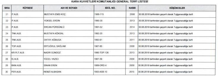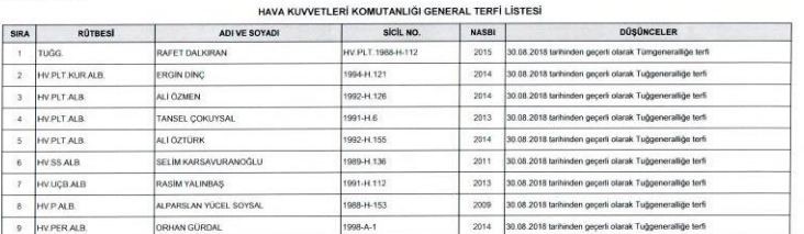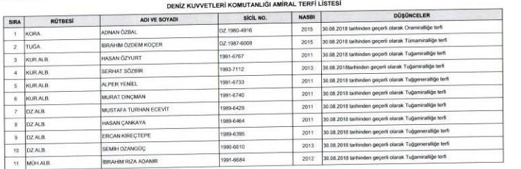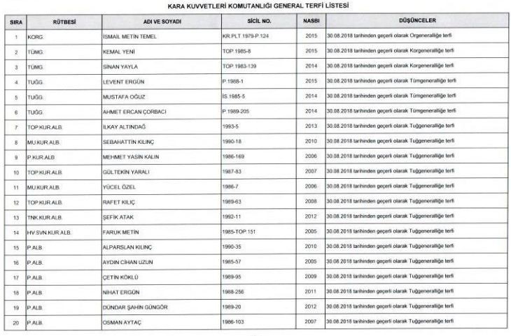 2018 YAŞ KARARLARIYLA TERFİ LİSTESİ