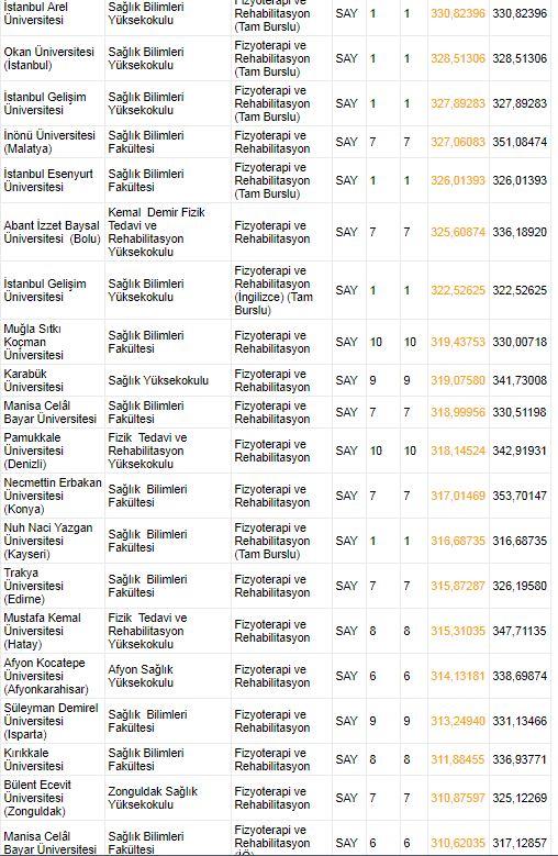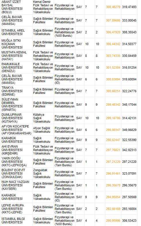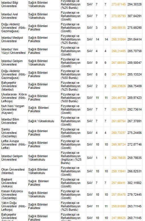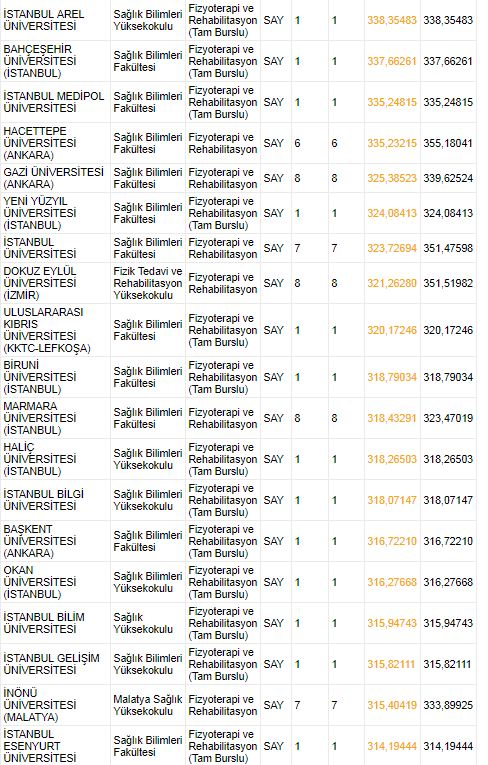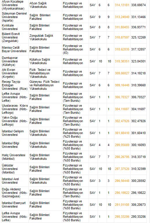 2018 yılı DGS Fizyoterapi ve Rehabilitasyon puan ve kontenjanları