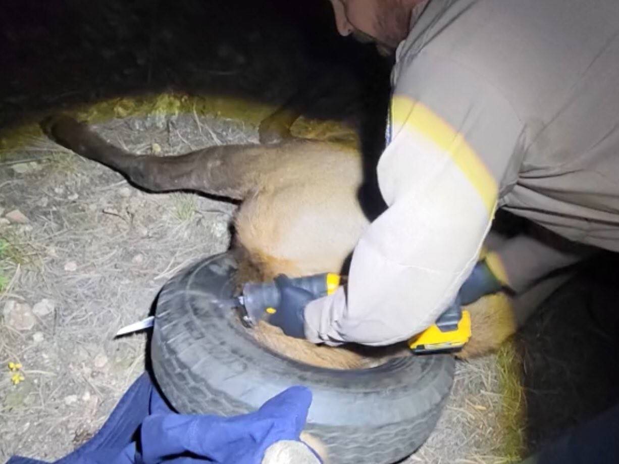 2019'da fark edilmişti! Araba lastiğiyle dolaşan geyik kurtarıldı