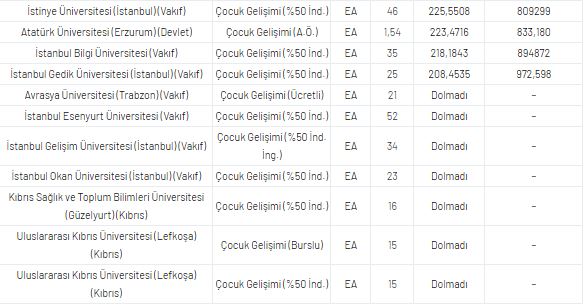 2021 Çocuk Gelişimi sıralama | Çocuk Gelişimi taban puanları
