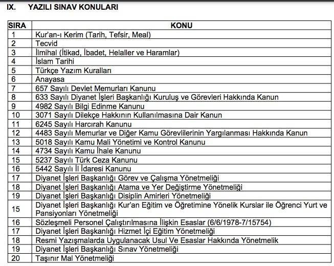 Diyanet görevde yükseme sınav konuları