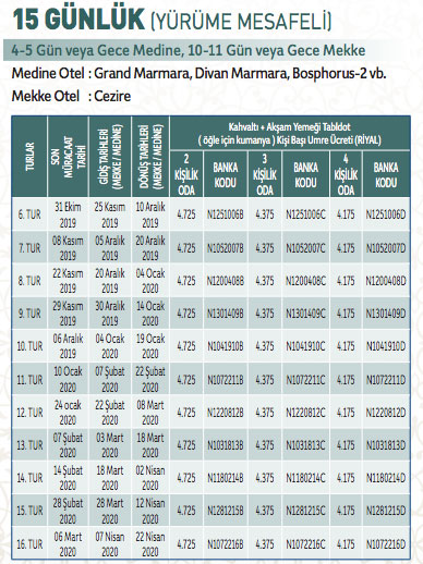 Diyanet İşleri Başkanlığı (DİB) 2020 Hac Şartnamesi satışa sunulmuş olup, Hac ücretlerinin aşağıdaki şekilde olacağı açıklanmıştı. Salgın nedeniyle Suudi Arabistan yönetimi 2020 yılında yurtdışı hacı adayını kabul etmemişti.