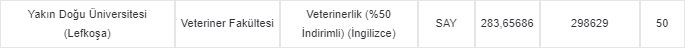 2021 Veterinerlik sıralama | Veterinerlik taban puanları