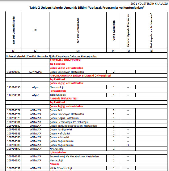 2021-YDUS (Çocuk Sağlığı ve Hastalıkları) Tercih Bilgileri ve Tablolar (2. Grup) tercih kılavuzu için tıklayın