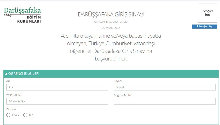 Darışşafaka giriş sınavı başvuru formu için tıklayın