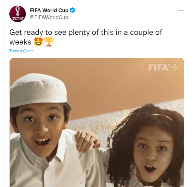 Katar'da oynanacak 2022 FIFA Dünya Kupası'nın jeneriği yayınlandı. Twitter hesabından paylaşılan videoda, "Birkaç hafta içinde bunlardan bolca görmeye hazır olun." denildi.