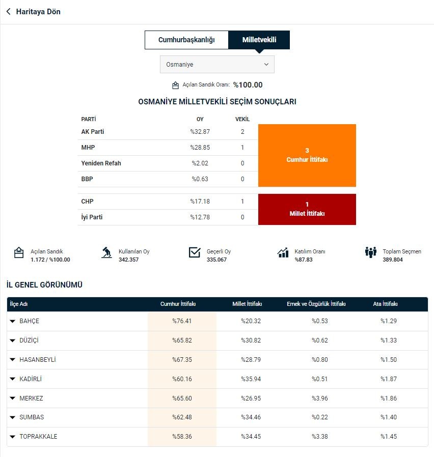 Türkiye'nin tarihi seçiminde Osmaniye'de yarışı kazanan isim Cumhurbaşkanı Erdoğan oldu.
