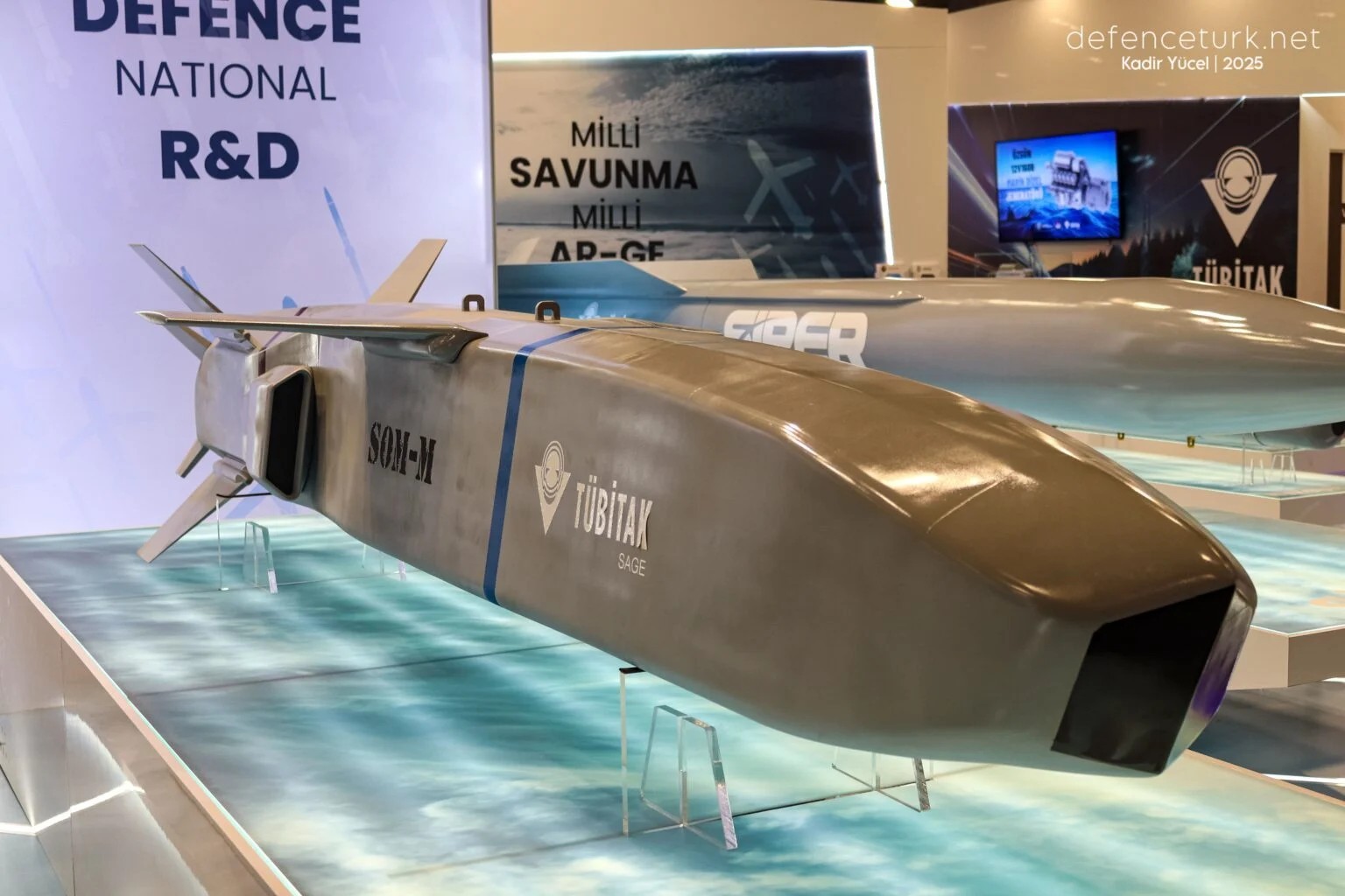 Milli Muharip Uçak KAAN için geliştirilen ve uzun süredir merakla beklenen SOM-M seyir füzesi, 22-27 Temmuz 2025 tarihlerinde İstanbul’da düzenlenen IDEF 2025 Uluslararası Savunma Sanayii Fuarı’nda ilk kez sergilendi.