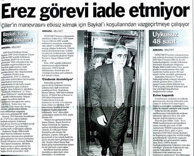 23 Aralık 1998: Demirel’in Yalım Erez'i Hükümeti Kurmakla Görevlendirilmesi