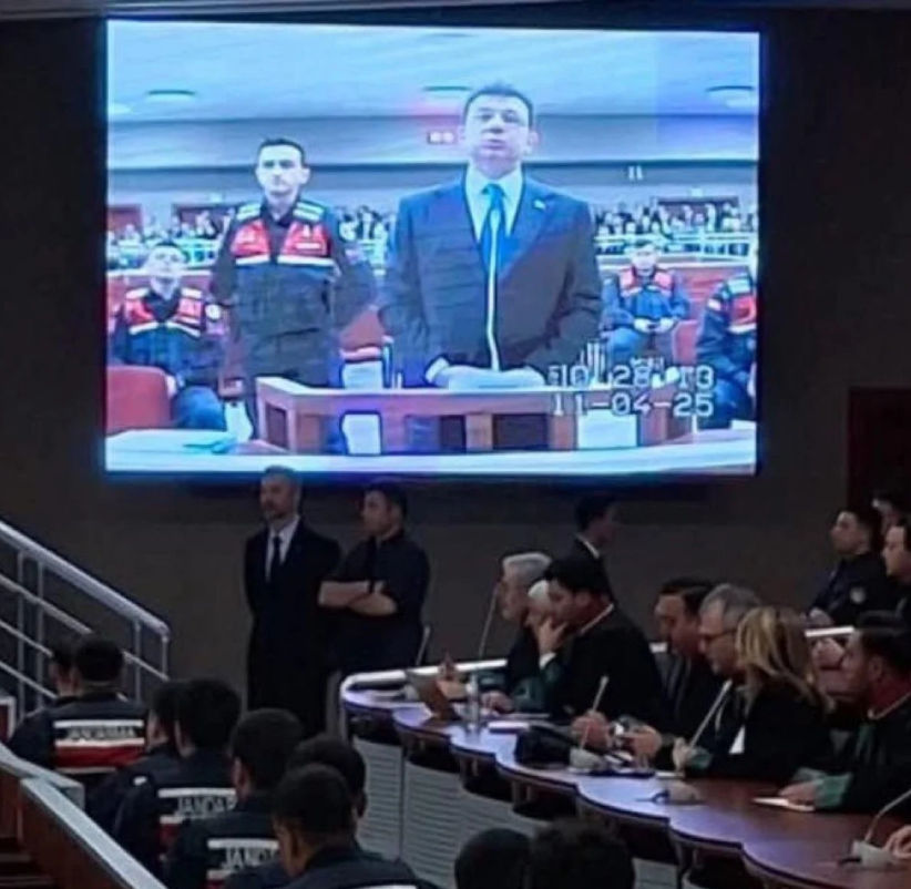 Davayı takip edenlerden biri İmamoğlu'nun sanık kürsüsünde savunma yaptığı anlardan kareyi paylaştı.