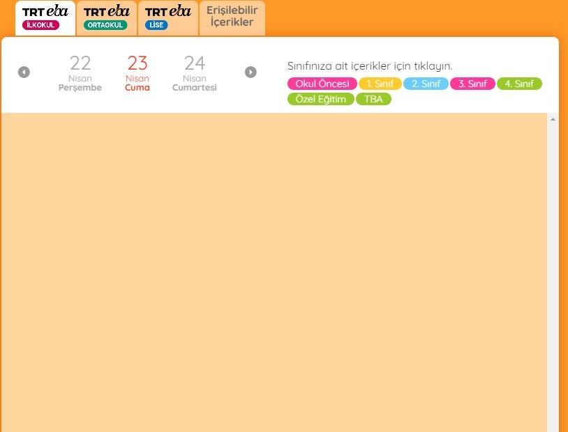 23 Nisan'da ders oluyor mu? Koronavirüs salgınında artan vakalar sebebiyle kısmi kapanma süreci başladı. Bu sebeple 8. ve 12. sınıflar hariç tüm sınıflar uzaktan eğitime geçti. Hem 8. ve 12. sınıf öğrencileri hem de uzaktan eğitime devam edenler cuma günü canlı ders olup olmadığını merak ediyor. Bugün canlı ders var mı?