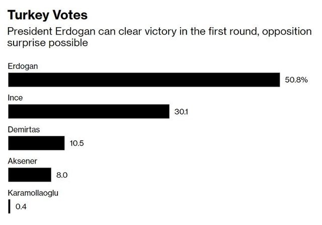 Bloomberg’ün haberinde, hata payının yüzde 3.5 olması nedeniyle bu sonuçların başkanlık seçimlerinin illa ki ilk turda sonuçlanacağı anlamına gelmediği vurgulandı.