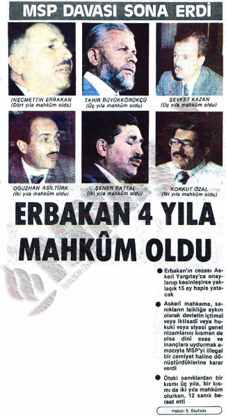 24 Şubat 1983: 1980 askeri dsrbesinden sonra feshedilen MSP davasında, Necmettin Erbakan'a 4 yıl hapis ve 1 yıl 4 ay sürgün cezası verildi.